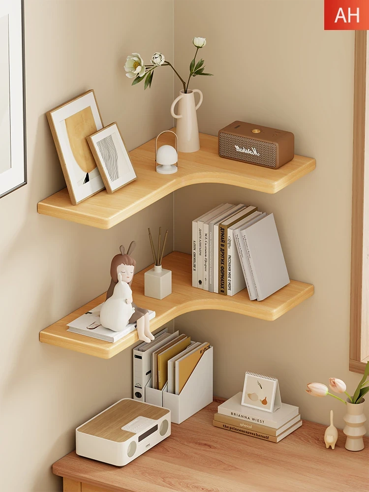 天然木材使用の壁掛け本棚!おしゃれなディスプレイラックで、リビングのコーナーを素敵に演出。空間を有効活用しながら、お気に入りのアイテムを美しく飾れます。