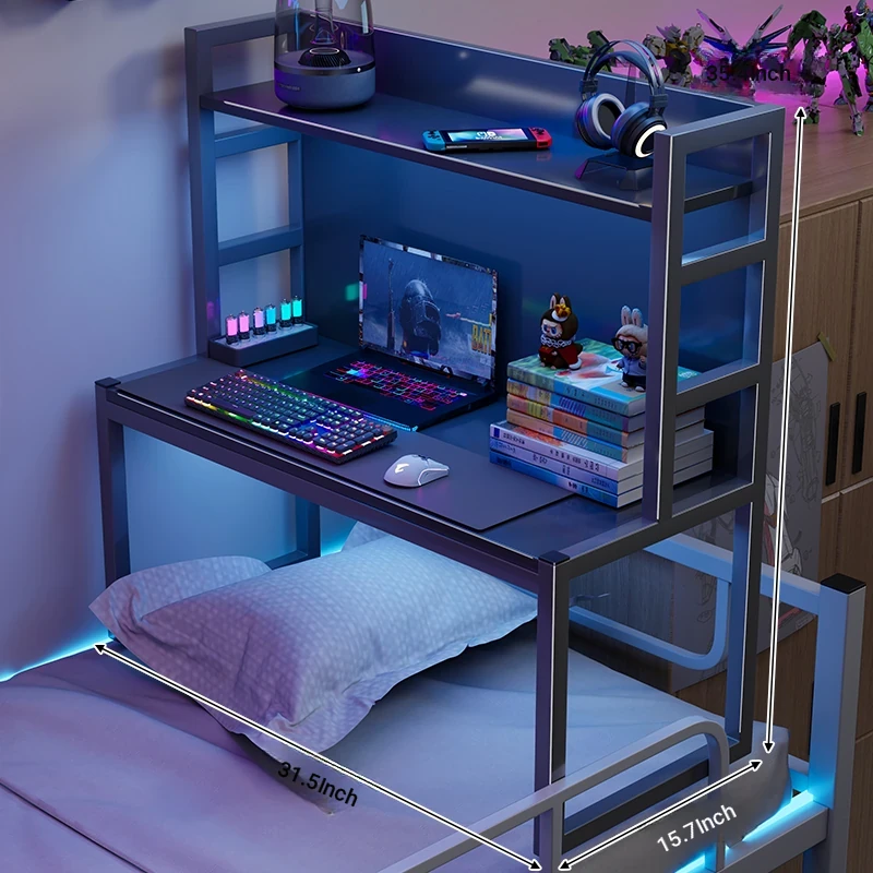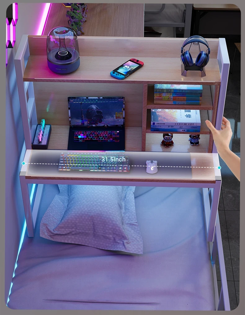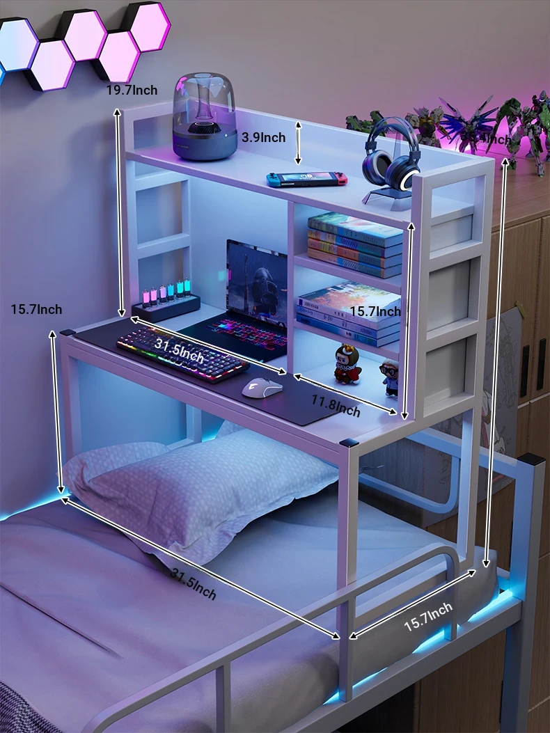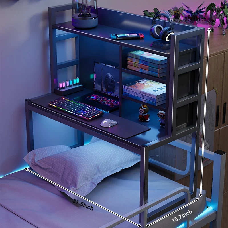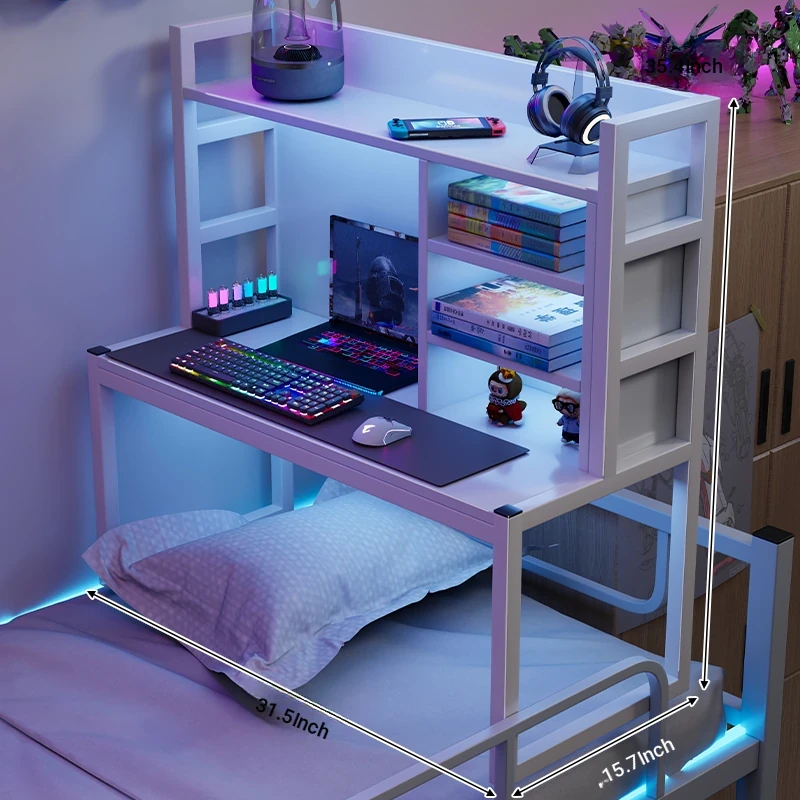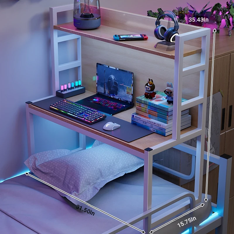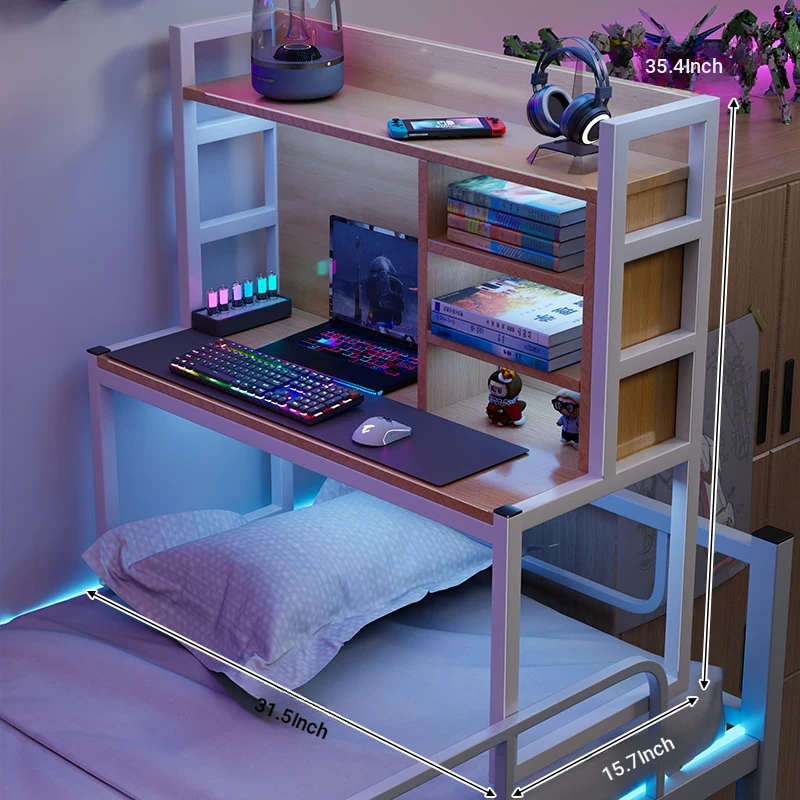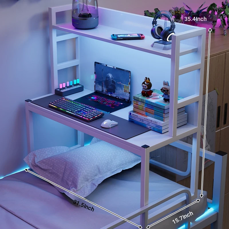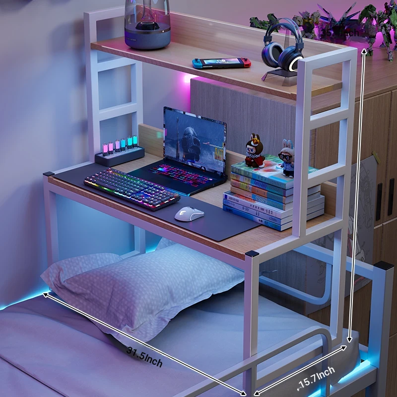 Dormitory Loft Bed Desk for College Students - Gaming and Study Table with Storage Rack, Perfect for Bunk Beds & Lazy Study Sessions - Ideal Bedside Computer Desk