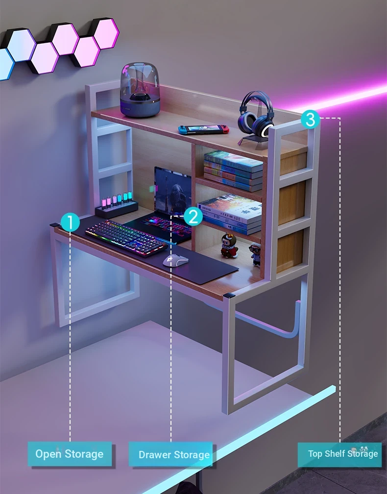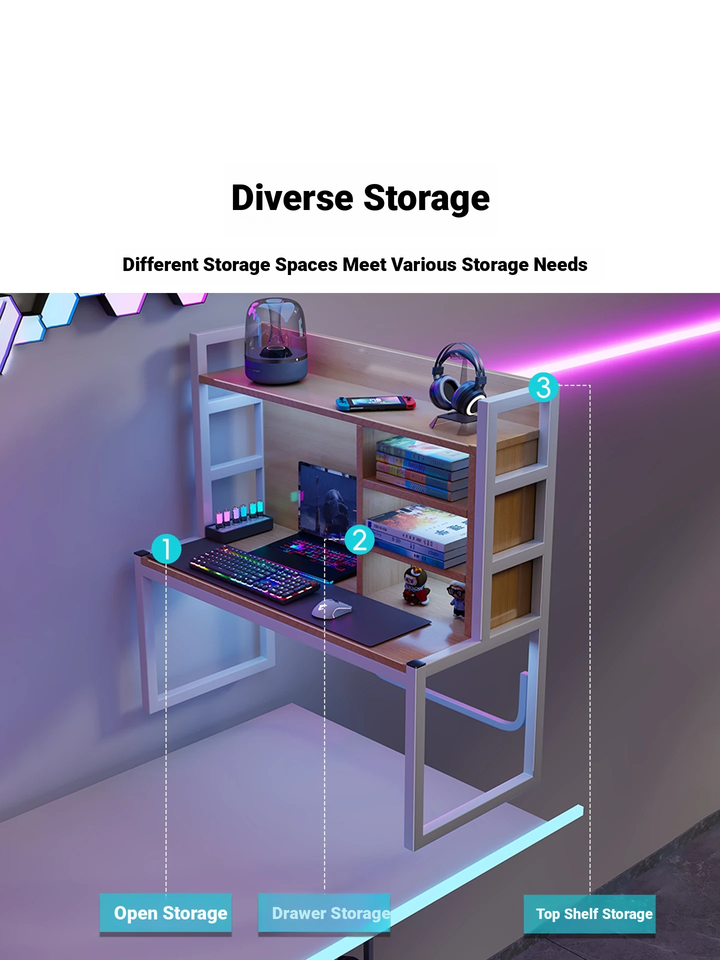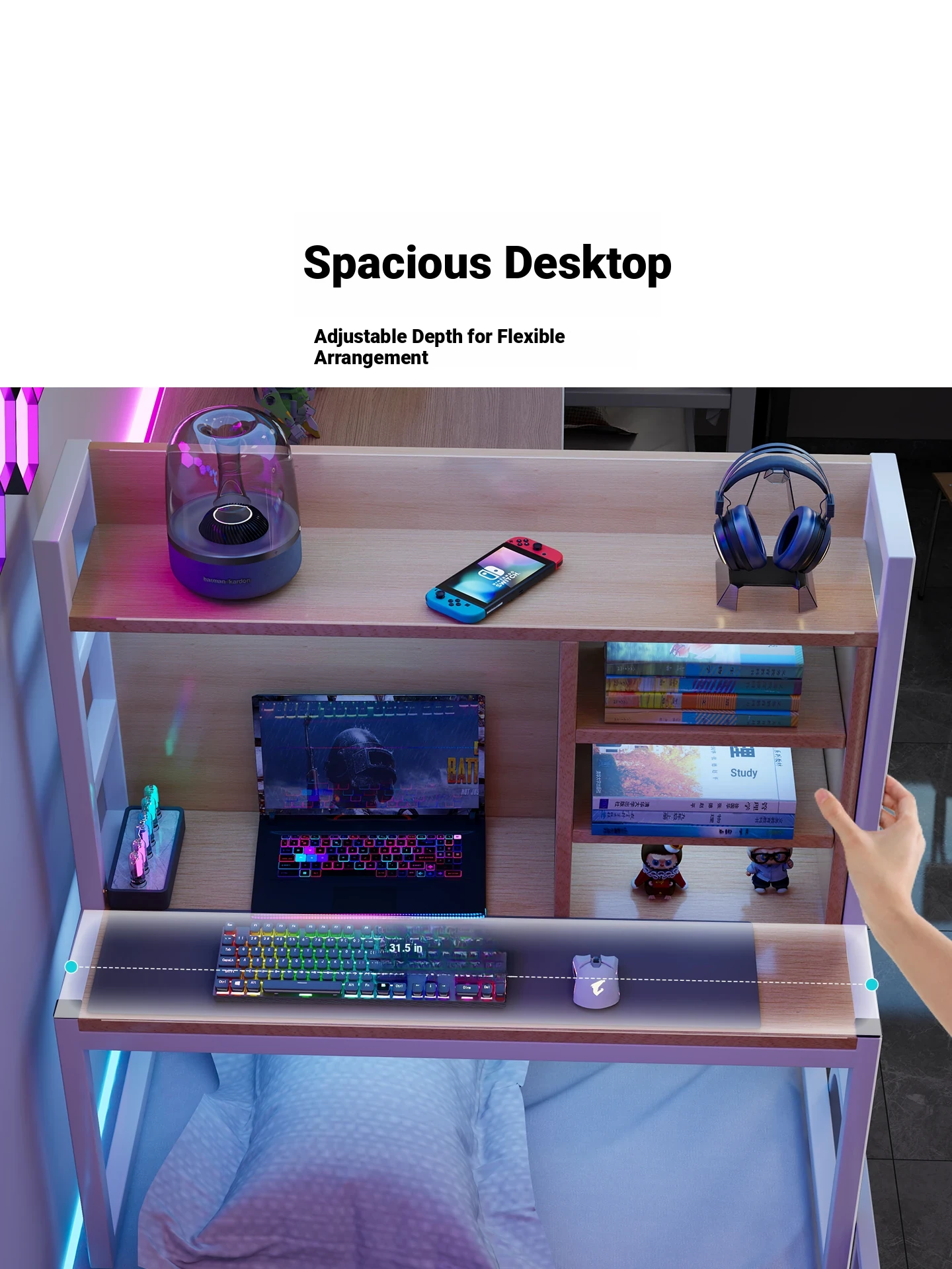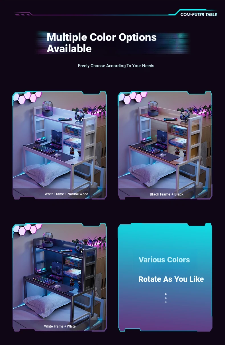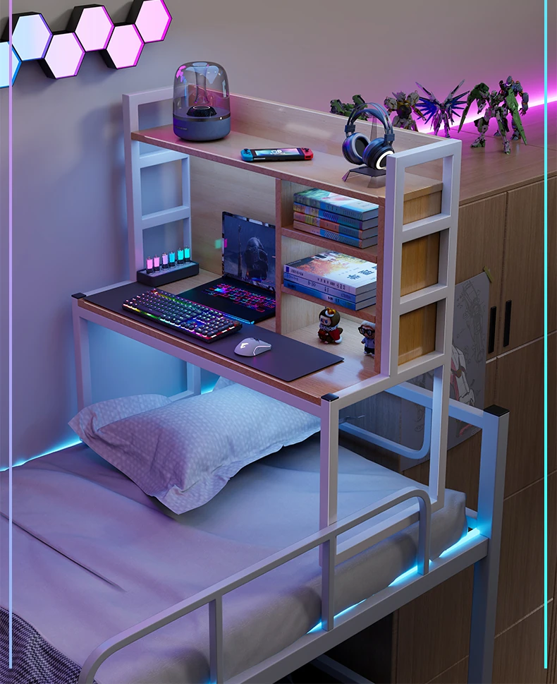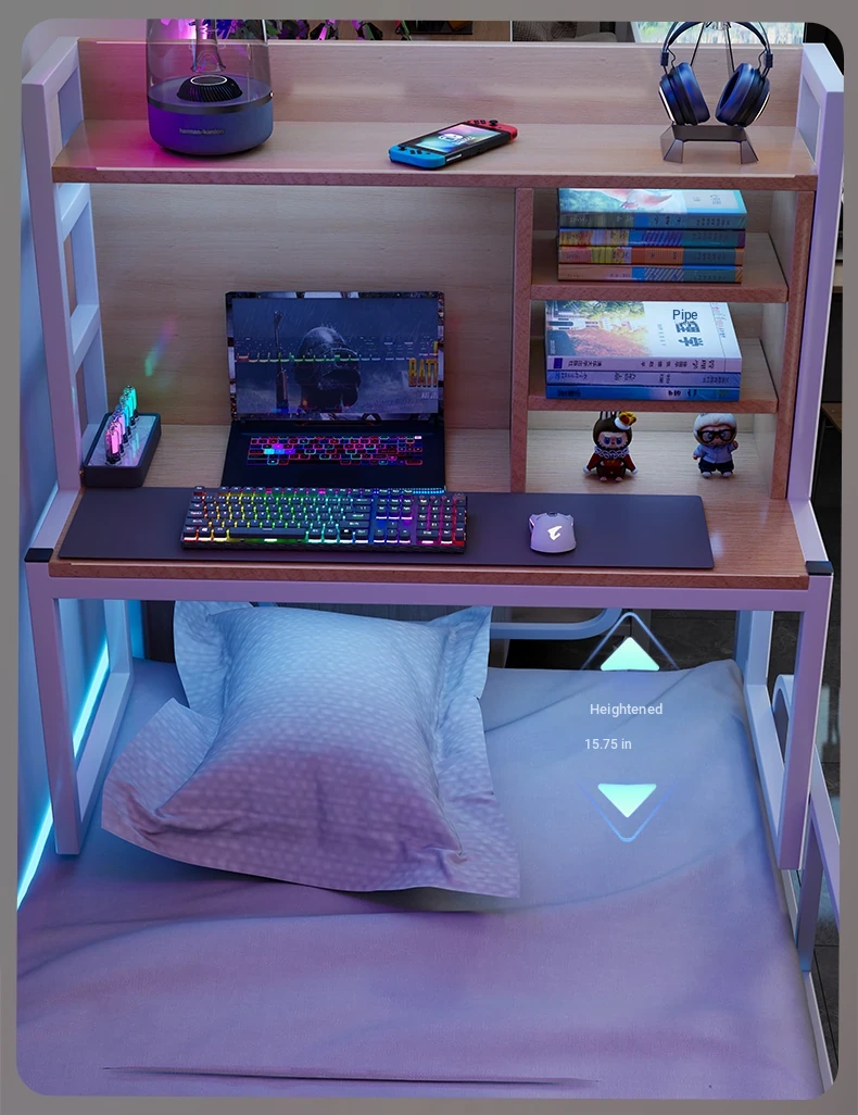 Dormitory Loft Bed Desk for College Students - Gaming and Study Table with Storage Rack, Perfect for Bunk Beds & Lazy Study Sessions - Ideal Bedside Computer Desk