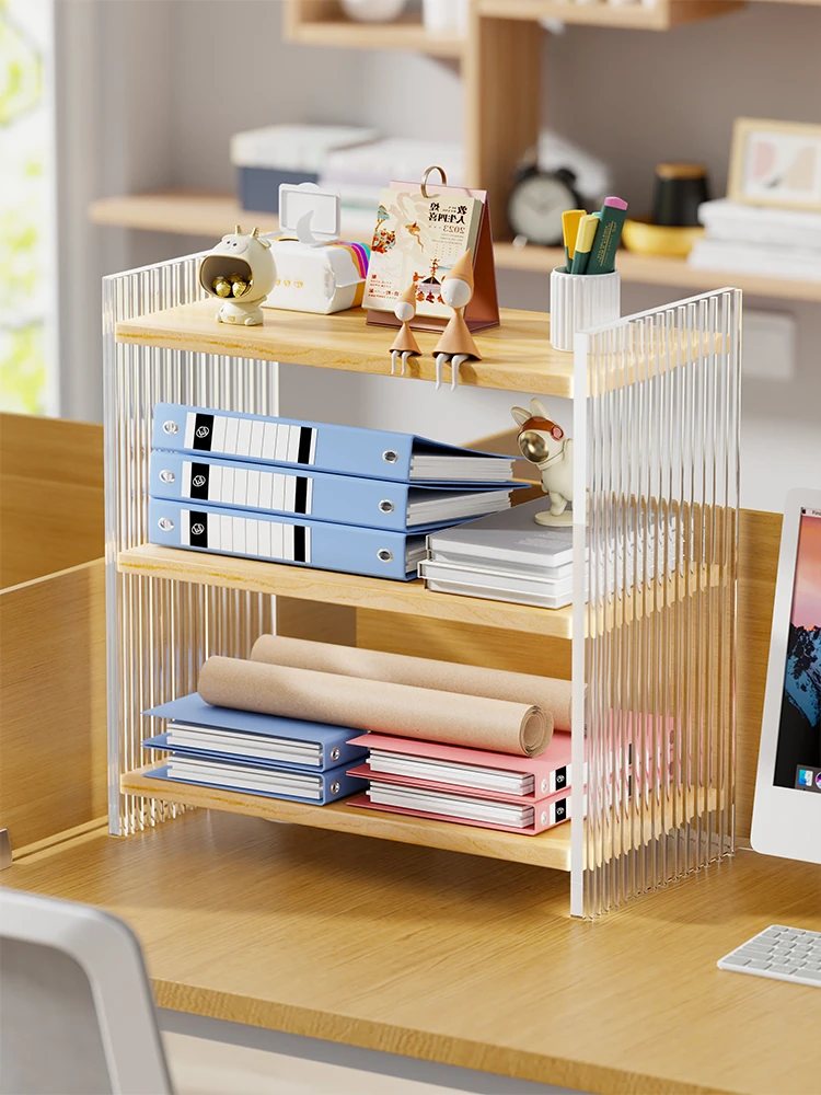 Office Desk File Rack - Desktop Bookshelf for Students, Desktop Storage Cabinet, Workstation Organizer, Multi-Tiered Storage Shelf for Efficient Desk Organization