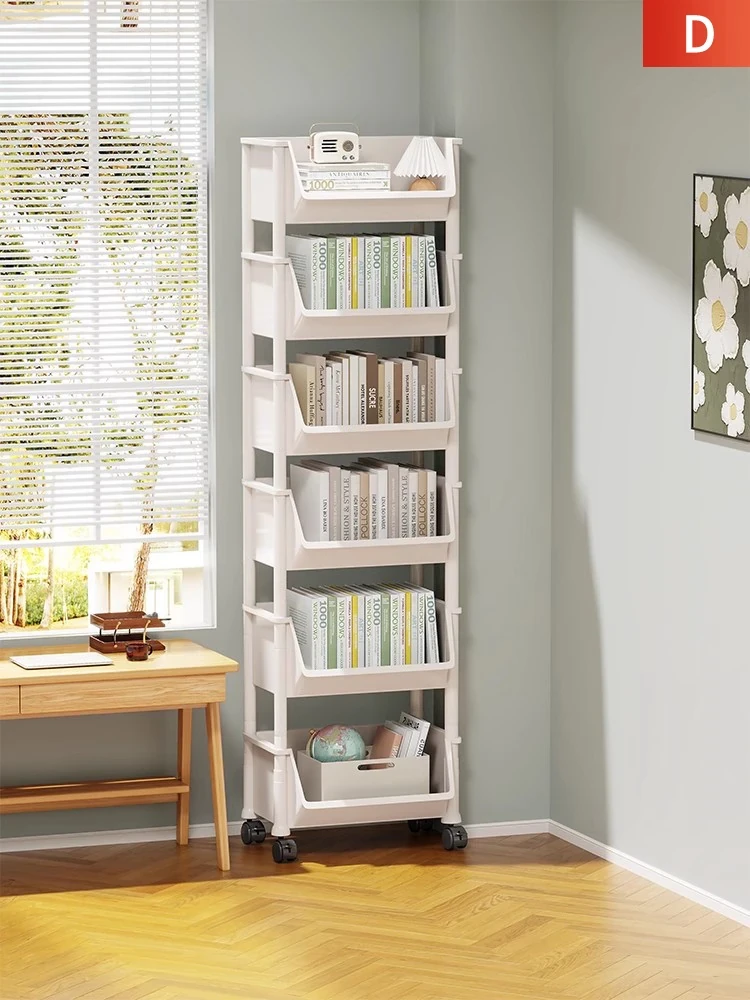 Mobile Rolling Kids Bookshelf with Wheels - Easy-to-Move Book Storage Rack for Desks and Study Areas, Perfect for Organizing Books and Supplies, Compact Floor-standing Design.