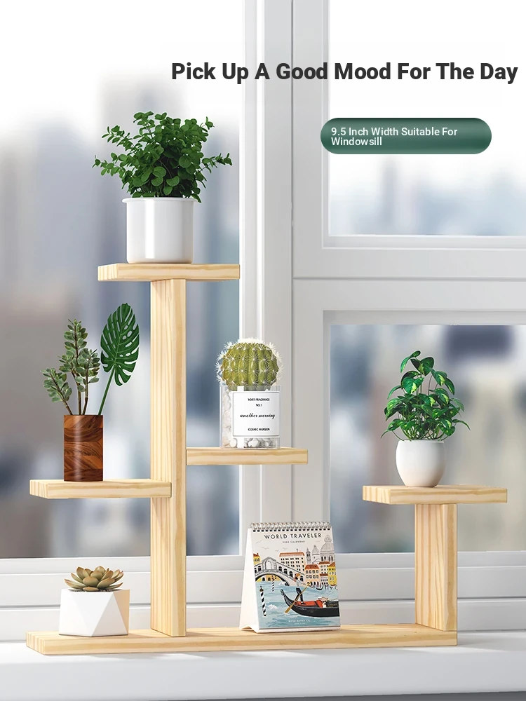 Creative Solid Wood Windowsill Flower Rack - Multi-Layer Succulent Storage Shelf for Nordic Indoor Balconies and Corner Spaces - Perfect for Stylish Home Decor!