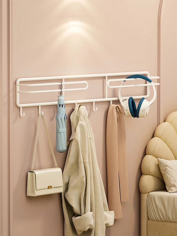 Wall-Mounted Storage Rack with Hooks - No Drill Hanging Coat Rack and Towel Organizer - Stylish and Space-Saving Wall Shelf for Home Décor and Efficient Storage Solutions