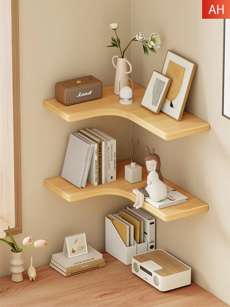 Solid Wood Wall-Mounted Bookshelf - Stylish Floating Shelves for Home Decor, Perfect for Living Room Corner Spaces, Multi-Layer Storage & Display Solutions