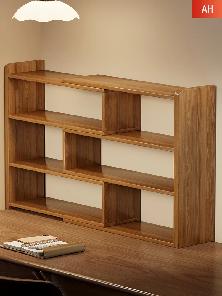Multi-Tier Solid Wood Desktop Bookshelf - Expandable Storage Rack for Office Desk, Perfect for Organizing Books and Supplies!