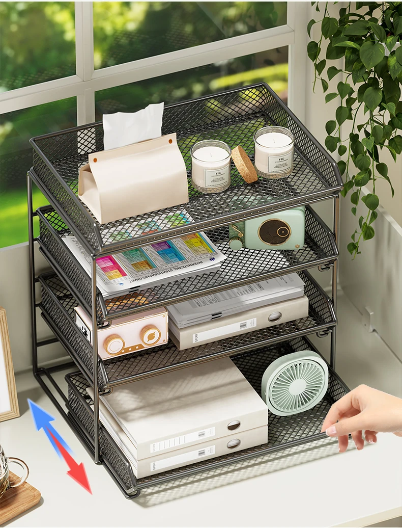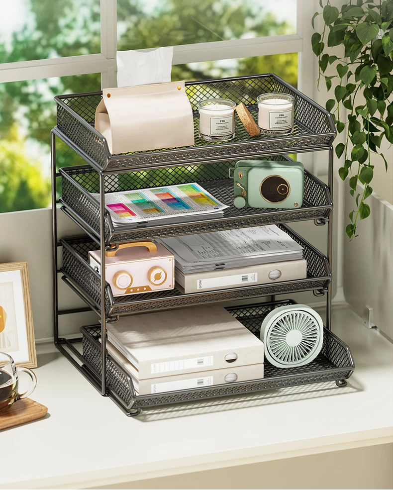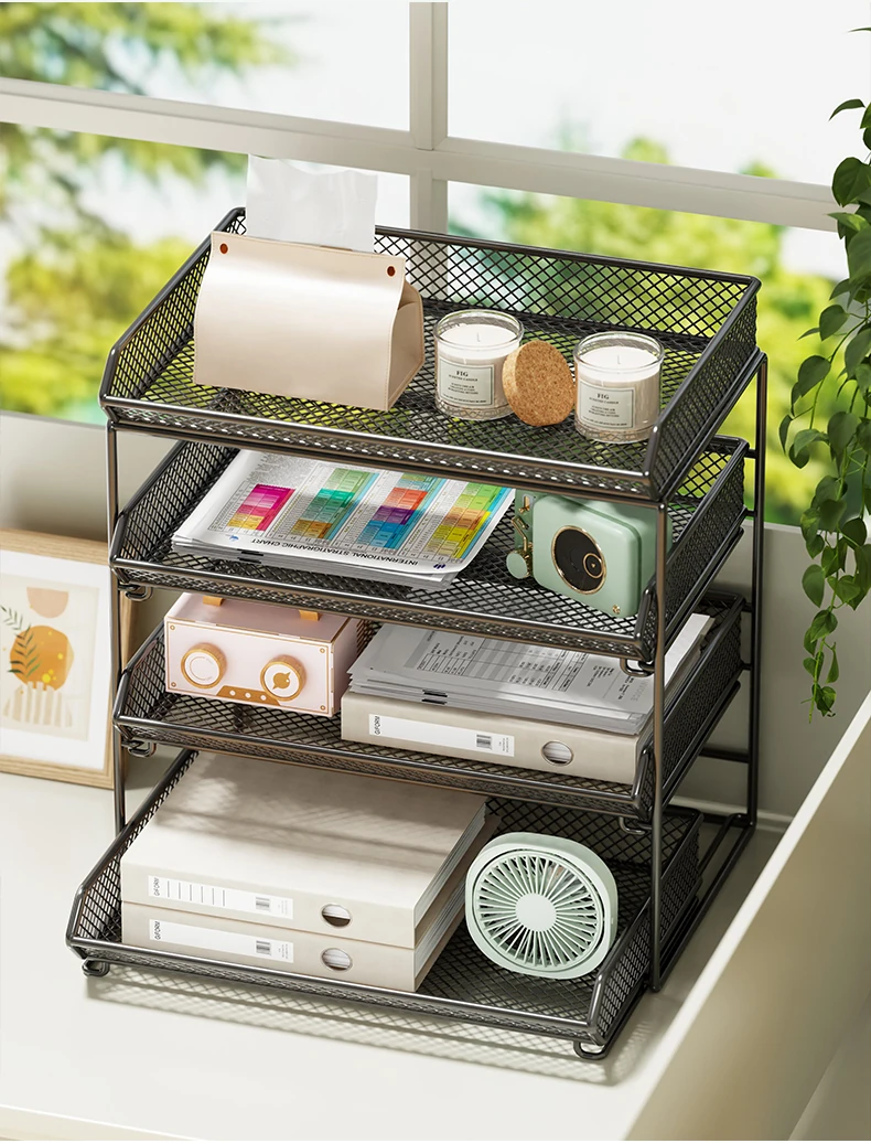 オフィスデスク用多段収納ラック - デスク周りをスッキリ整頓!子供向けシンプル書棚で、書類や文房具もすっきり収められる整理整頓の必需品!