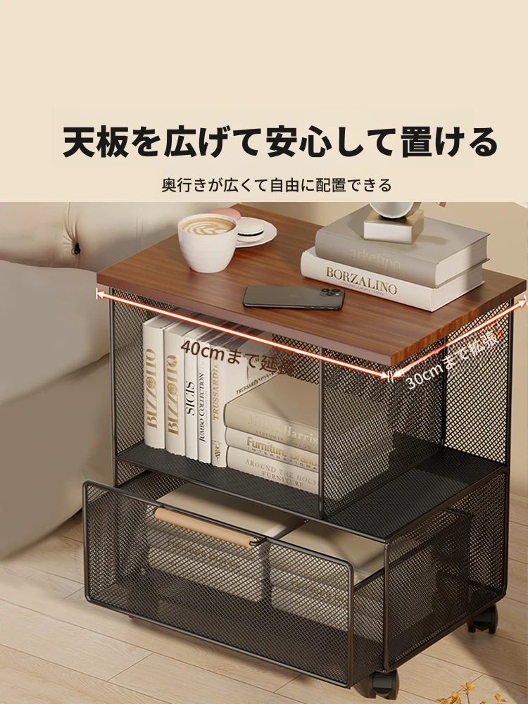 移動可能なサイドテーブル、リビングルームでの高級感を演出!引き出し付きのシンプルなデザイン、ソファの横やベッドサイドにぴったり。キャスター付きで便利な収納、寝室やリビングに最適なアイテムです!
