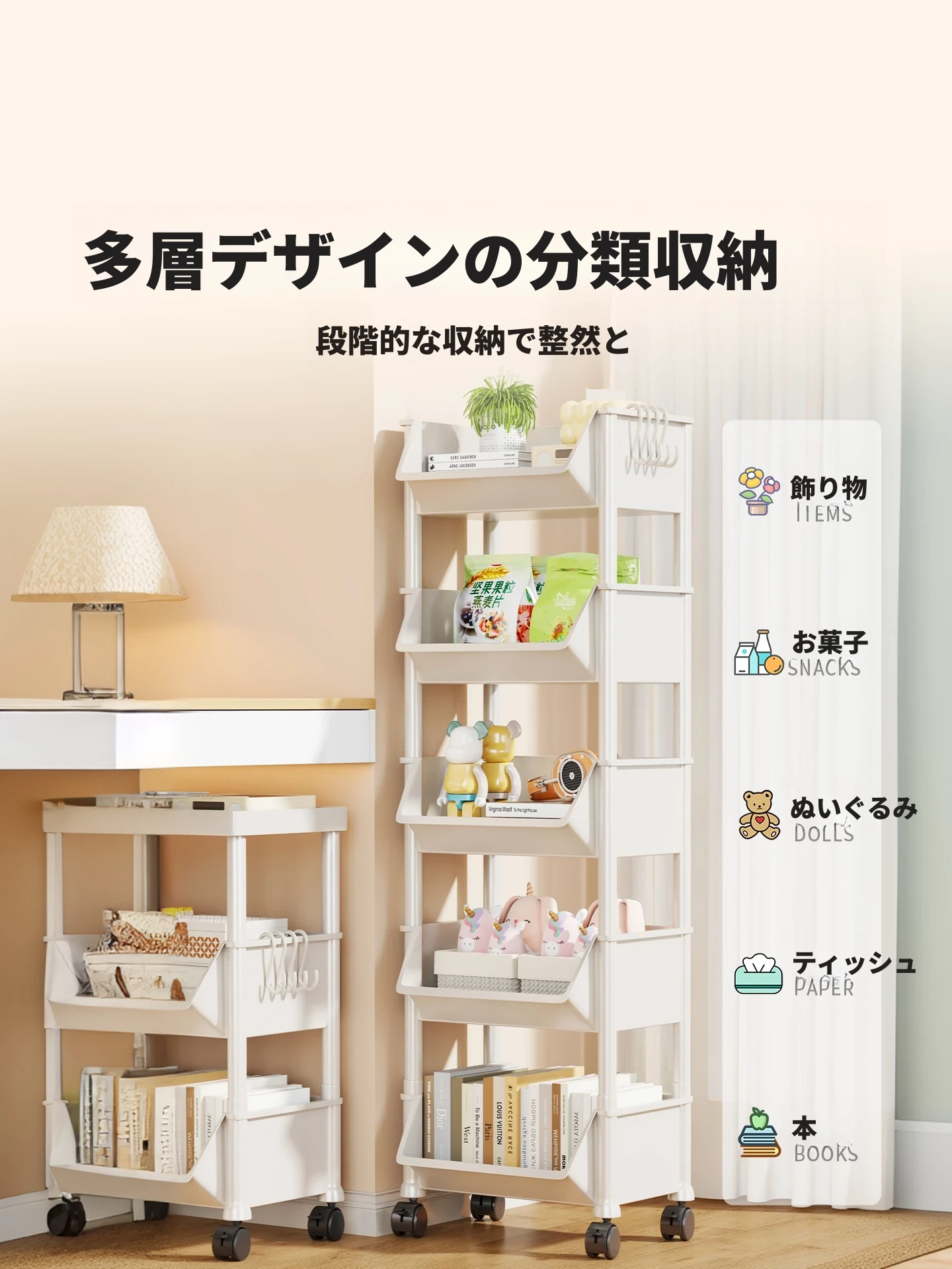 移動式書架&収納ラック!子供のおもちゃや本をスッキリ整理!多層設計の便利な家庭用キャリーカート、シンプルで使いやすい学生用書棚。お部屋をおしゃれに演出します!