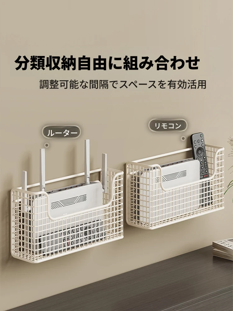 Wi-Fiルーター壁掛け収納ラック - 簡単設置でお部屋をすっきり!テレビボックスや小物も一緒に整理できる、穴を開けずにおしゃれに収納する家電ラックです。