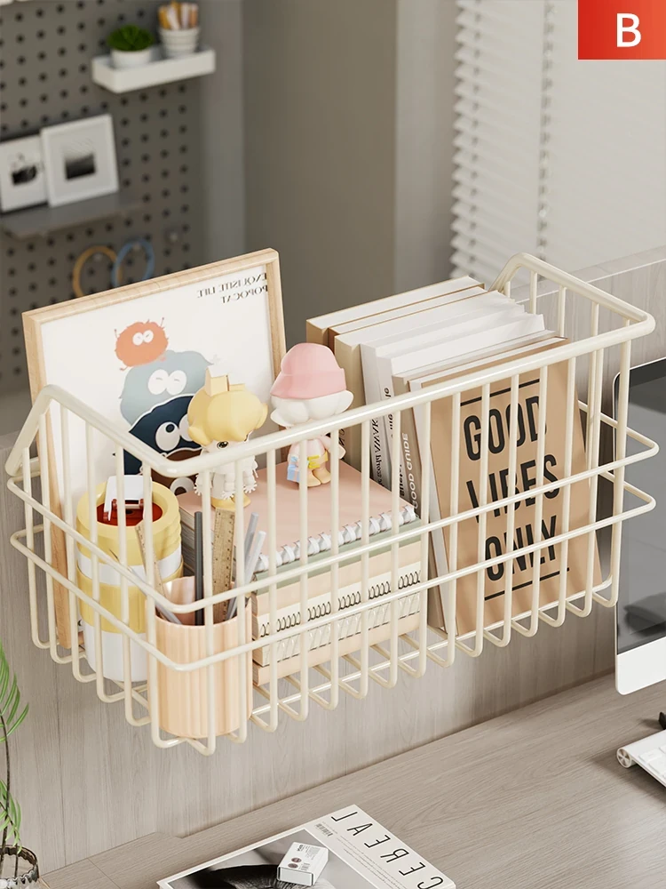 オフィスデスク収納ラック 省スペースの吊り下げ式書籍・資料整理ボックス シンプルなアイアンデザイン 大容量ストレージの必需品!あなたの作業環境をスッキリ整えて、効率をアップさせましょう!