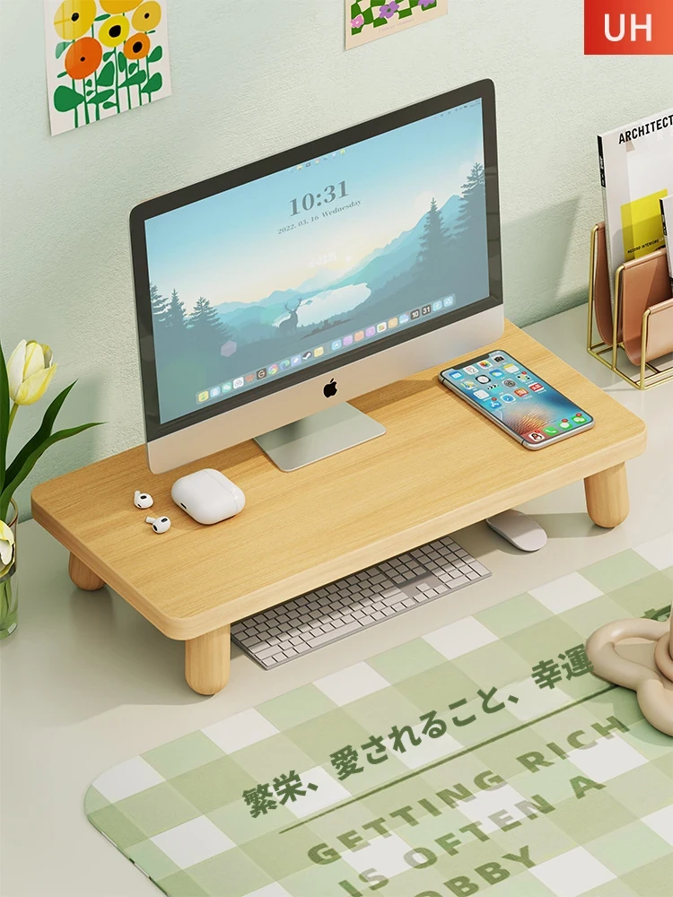 天然木材使用!デスク周りをスッキリ整理!モニター昇降スタンド - コンパクトなデスクトップPC専用、作業効率アップ間違いなし!