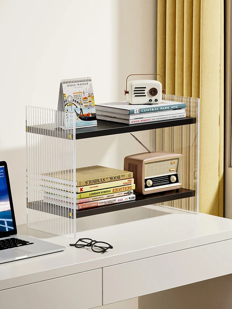 デスク上の収納革命!アクリル製の多層デスクシェルフ - オフィス空間をスマートに変身させる簡易書棚。おしゃれで機能的な書斎の必需品!