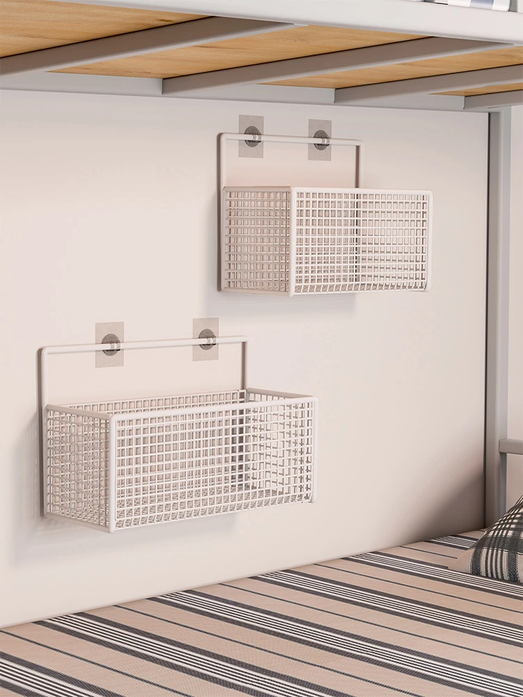 学生寮に最適!壁掛け収納バスケット - 上段ベッド用の便利な壁面収納、ネジ不要で簡単取り付け!部屋をスッキリ整理整頓して、快適な寝室環境を実現!