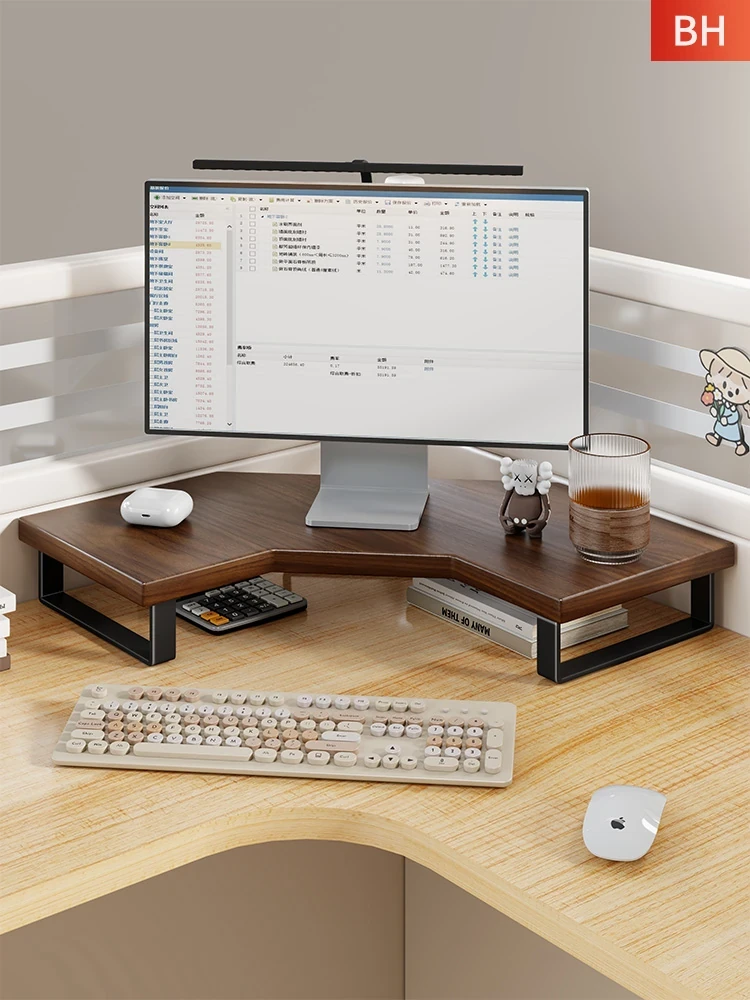 デスクトップPC用コーナー昇降スタンド - モニターアッパー、スクリーンベース、マルチファンクション収納ラックで快適な作業環境を実現!