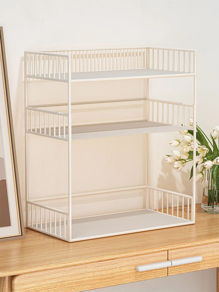 デスク上の多層収納ラック - 学生寮やオフィスにぴったり!化粧品や書籍をすっきり整理できるシンプルでスタイリッシュな書棚。限られたスペースを有効活用し、作業効率をアップ!