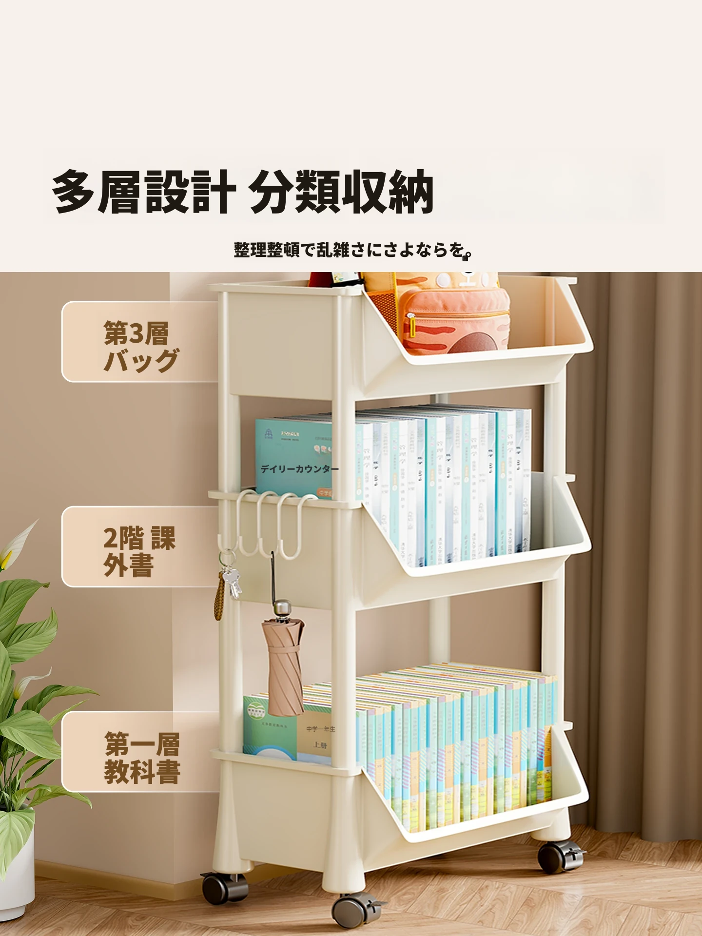 多機能収納カート!学生や家庭に最適な多層書籍・資料用ラック。リビングにぴったりな雑誌スタンドや飾り棚としても使用可能。スペースを有効活用し、整理整頓をサポートします。