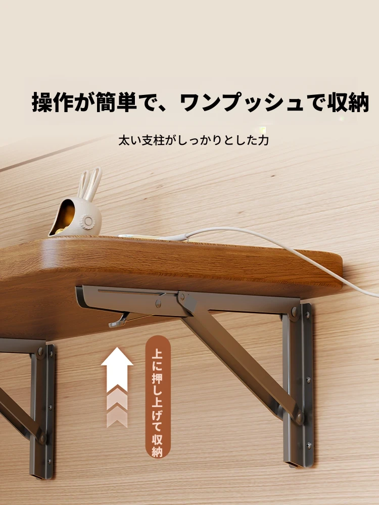 壁掛け折りたたみテーブル - 穴なし設置で簡単!キッチンやリビングに最適な多機能シェルフ。スマートなスペース活用で、収納力抜群の一字型ラック!