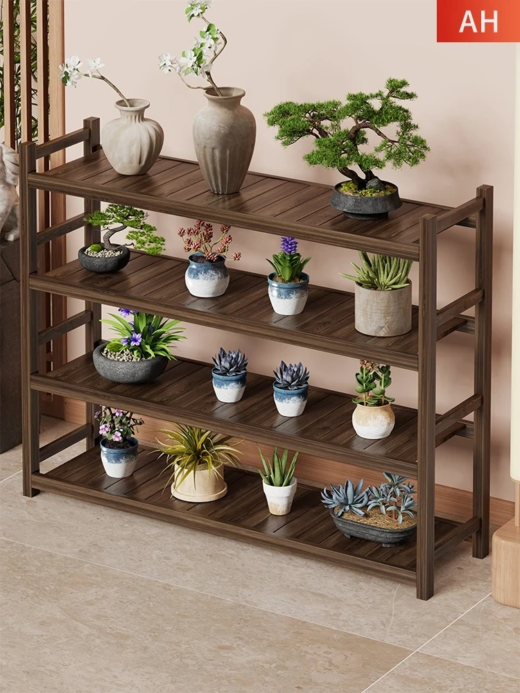 天然木製のフラワースタンド - 多層構造でリビングやバルコニーに最適!観葉植物や多肉植物を美しくディスプレイできる、おしゃれで実用的な花盆ラック。あなたのお部屋に緑のアクセントを加えましょう!