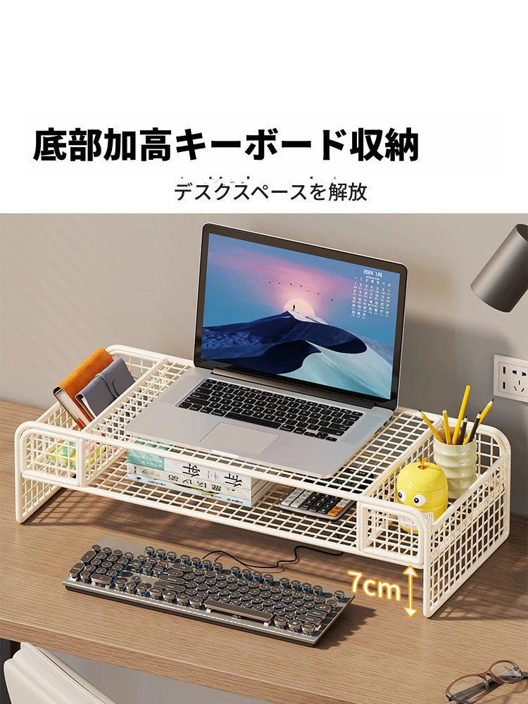 天然木材使用のデスク用モニター台!デスクをスッキリ整理し、パソコン作業を快適にサポート!高さ調整可能で、収納力抜群のシンプルデザイン。あなたのオフィスに最適なアイテムです!