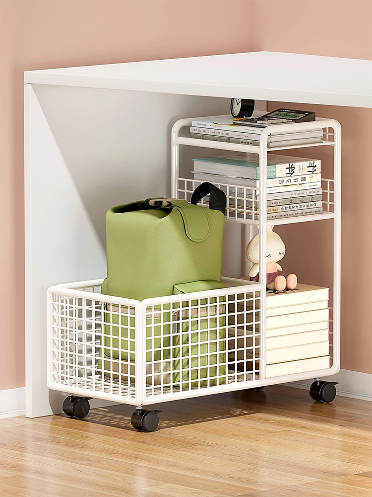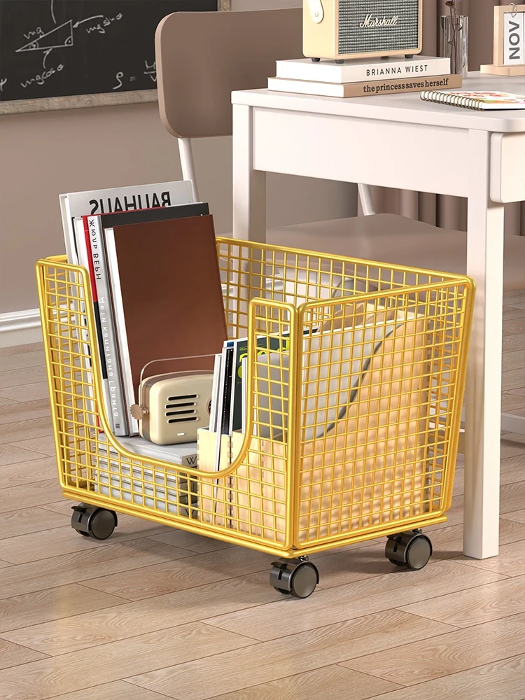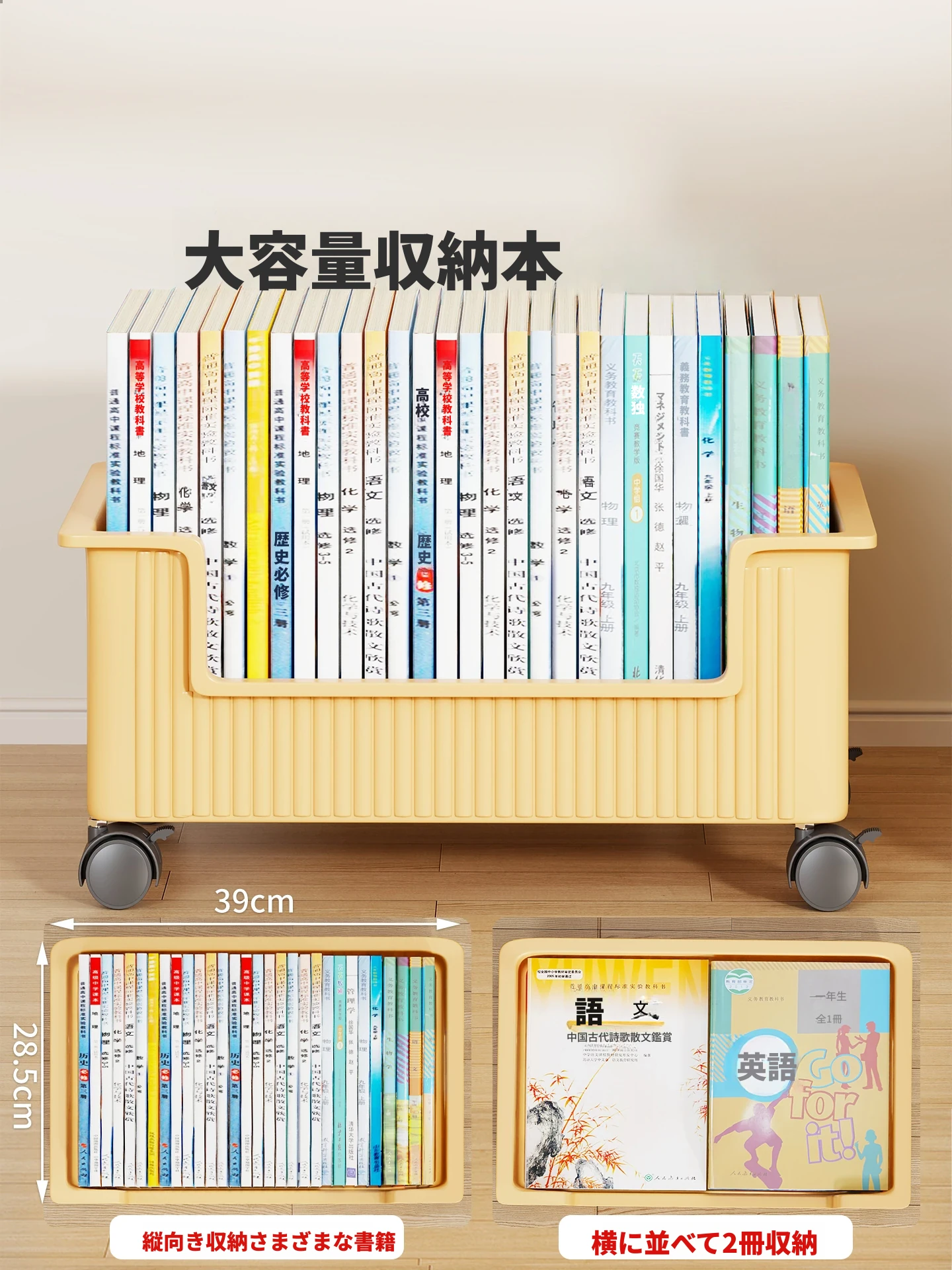 学生必見!キャスター付きの移動式書棚 - 机下にぴったり収まる収納バスケット!教科書や文具をすっきり整理できる便利アイテム。学びの空間をもっと快適に!