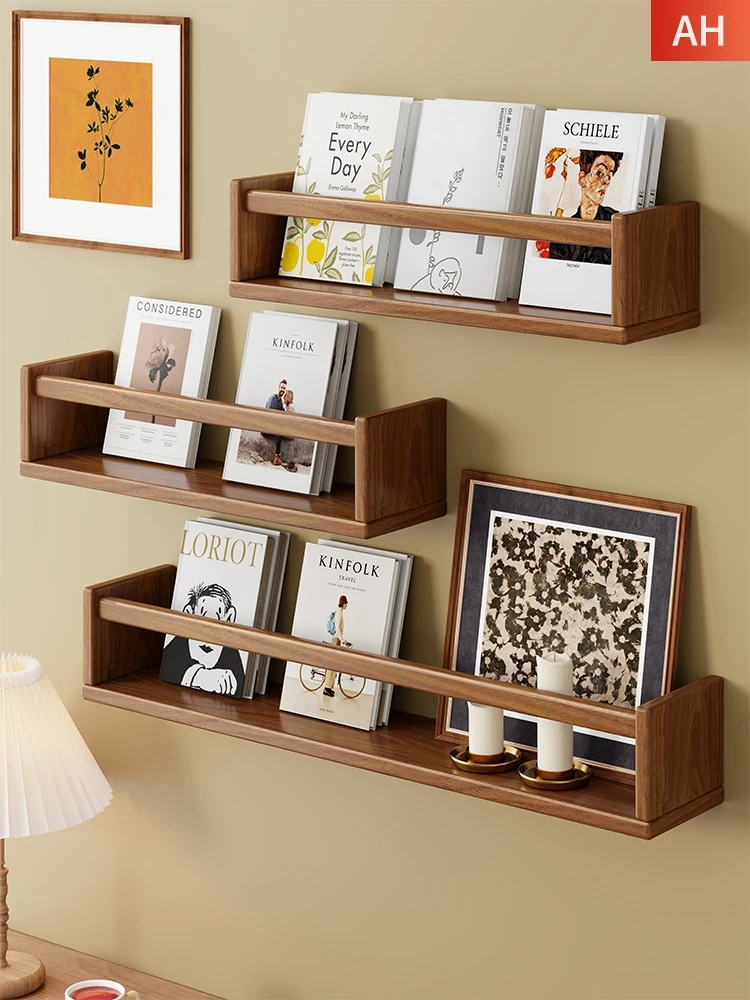 穴なし簡単取り付け!高品質の無垢材を使用した壁掛け式収納棚 - おしゃれな壁面書棚&ディスプレイシェルフ。お部屋をスッキリ整理し、インテリアを引き立てるアイテムです!