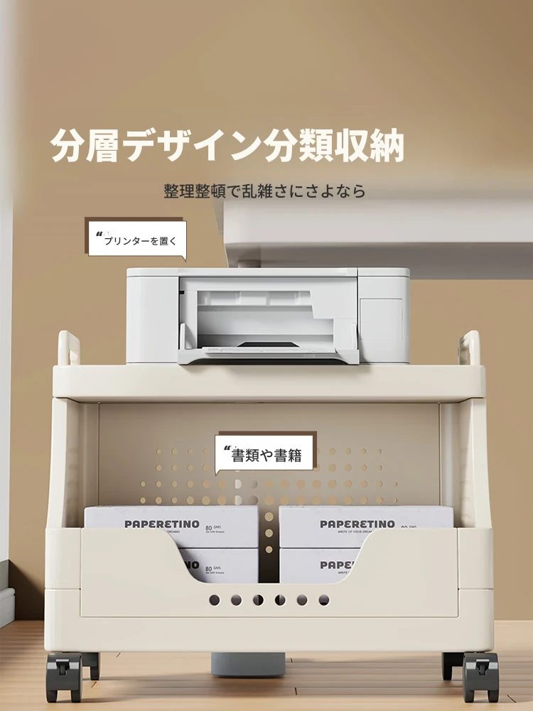 オフィス用プリンター収納ラック - 移動可能なコピー機スタンド、デスク下に最適!多層ファイル収納キャビネットで、スペースを有効活用し、整理整頓を実現!