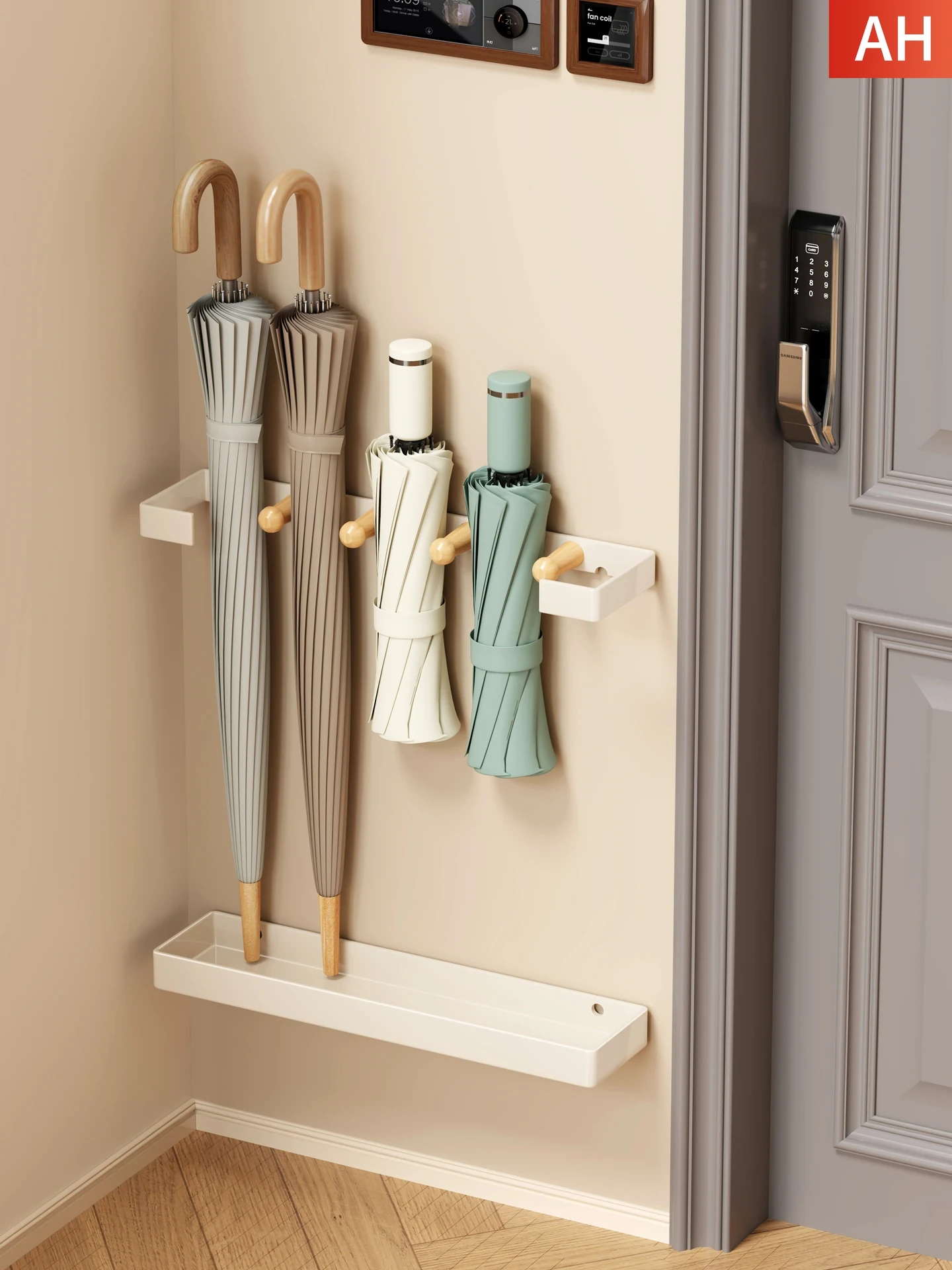 壁掛け雨傘収納ラック - 家庭用の便利な傘掛け!ドアの後ろに設置でき、水切れもバッチリ!穴あけ不要のスマートデザインで、玄関をスッキリ整理。傘の置き場に困っている方におすすめ!