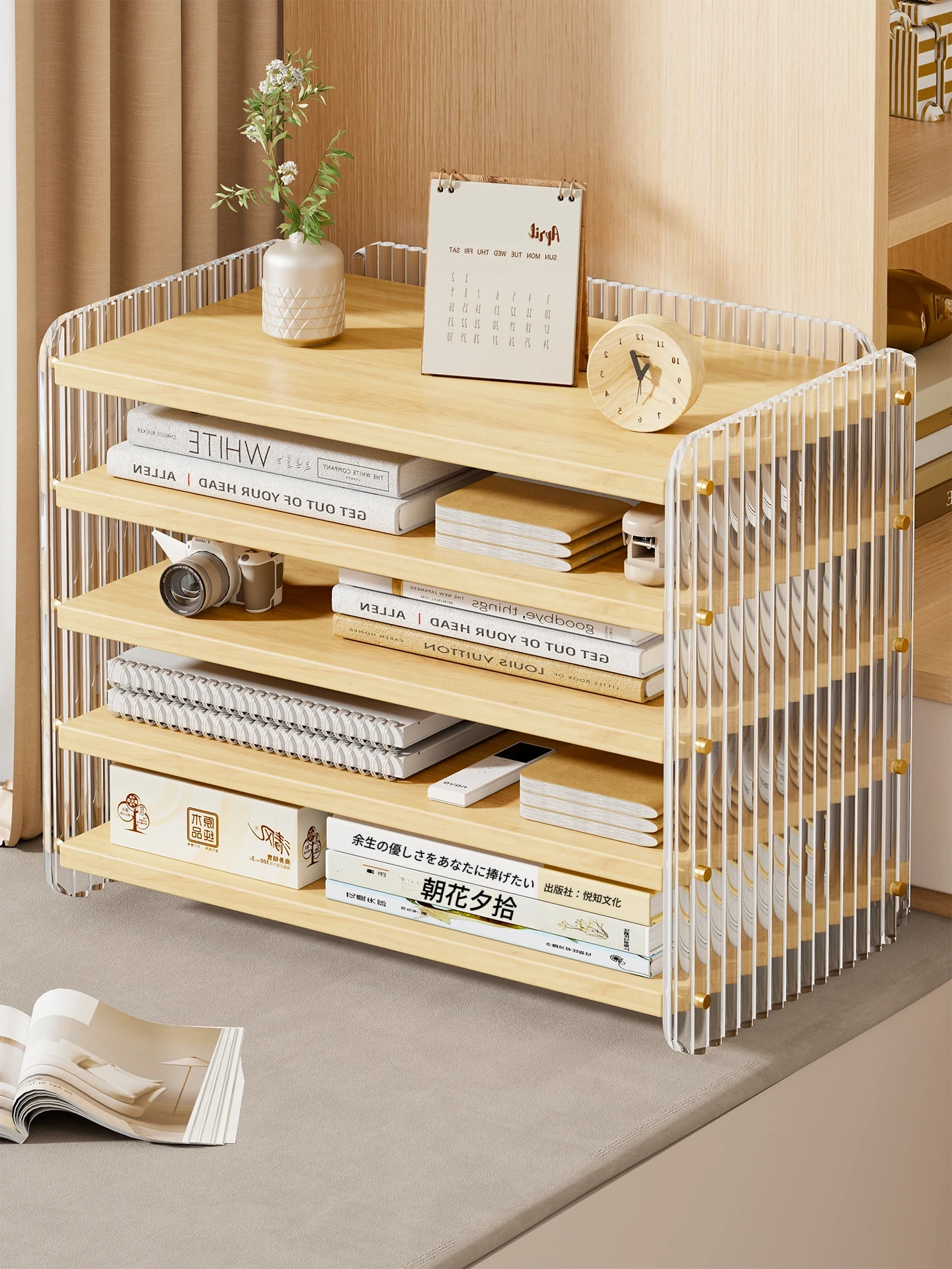 学生寮や書斎にぴったり!多機能デスクトップ書棚 - 学習や収納に最適なスタイリッシュな文具ディスプレイラック・ファイルキャビネット!あなたのスペースをスマートに整理整頓!
