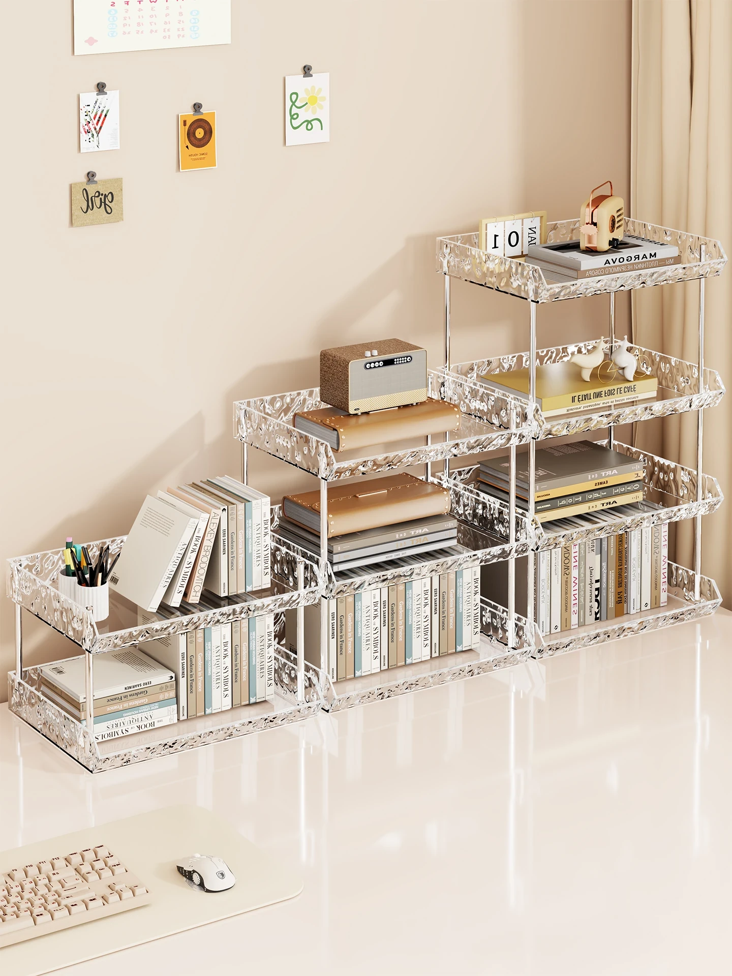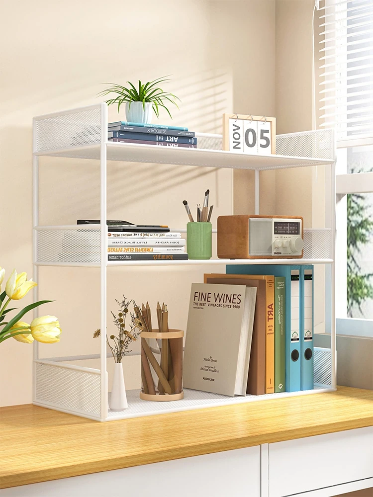 学習に最適!デスク上の書類整理に役立つ多層収納ラック - すっきりとした書籍スタンドで、学生の勉強環境を整えましょう!