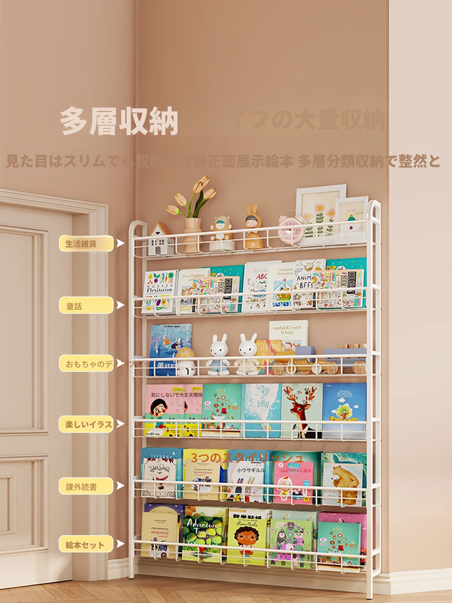 ドア後収納ラック 超薄型 壁掛けスリムシェルフ 多機能 子供向け絵本収納 隙間収納ラックでお部屋をすっきり!狭いスペースを有効活用し、整理整頓を簡単に!