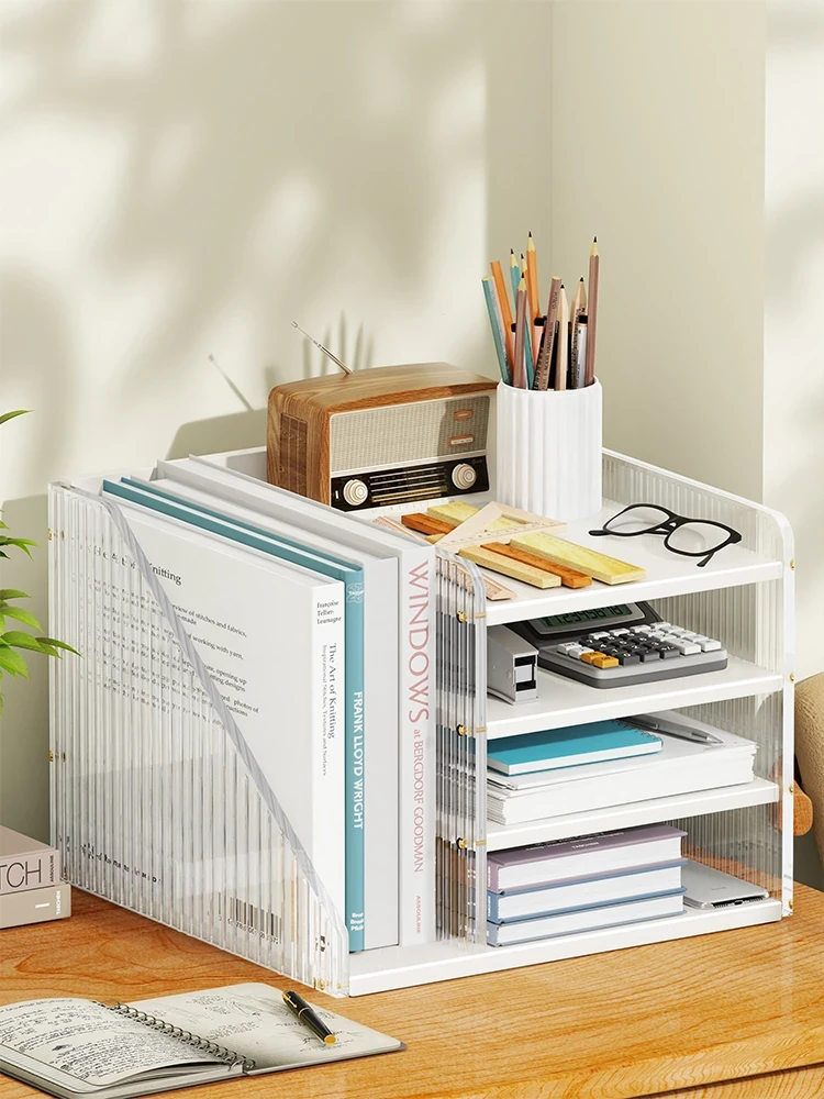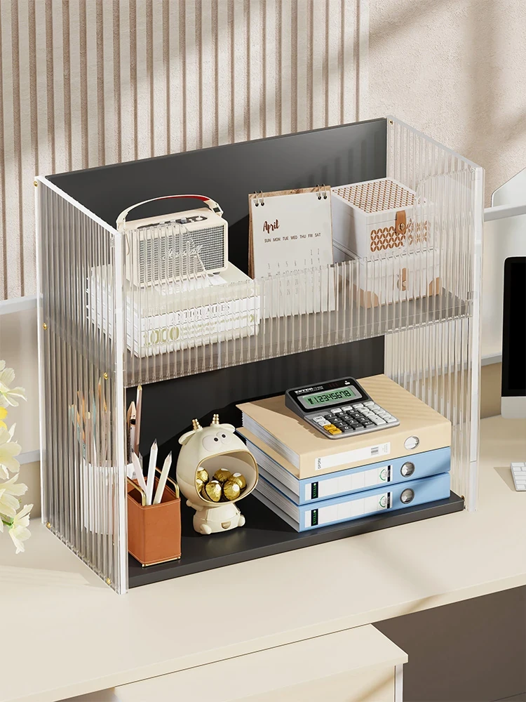 Acrylic Desktop Bookshelf Organizer - Elegant Storage Rack for Students, Perfect for Study Supplies and Desktop Organization