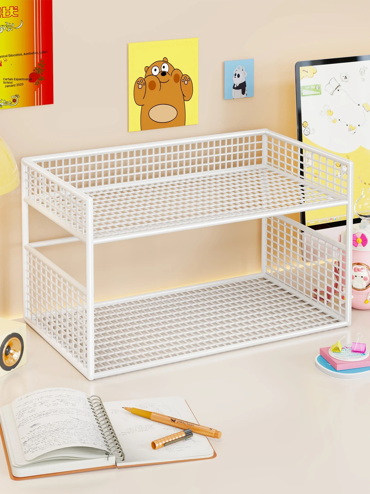 Multi-Layer Desktop Storage Rack - Stylish Iron Bookshelf for Office & Student Dorms, Perfect for Organizing Your Desk Essentials!